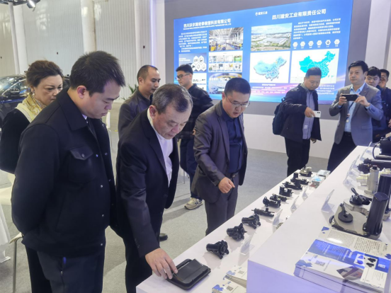 中国国际贸易促进委员会汽车行业委员会会长王侠(左二)巡视四川馆