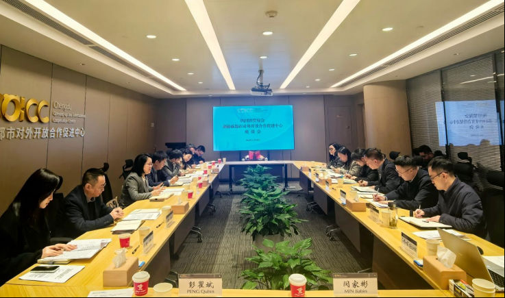 在成都市对外开放合作促进中心,调研组实地考察该中心在搭建国际合作平台、推进“开放成都”合作伙伴计划、打造成都企业出海综合服务中心等方面的创新成果,与中心、成都国际贸易集团主要负责人进行了座谈交流。
