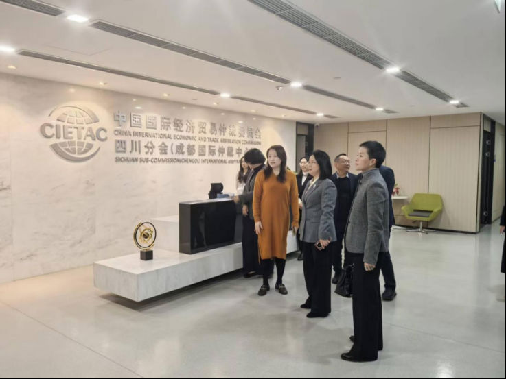 随后,调研组前往中国国际经济贸易仲裁委员会四川分会进行调研,吕芙蓉会长就案件办理流程、专家队伍建设及区域合作等方面内容与贸仲四川分会相关负责人进行了深入交流。她表示,随着四川企业“走出去”步伐加快,涉外法律风险防范需求日益迫切,省贸促会将加大对贸仲四川分会在川开展工作支持力度,共同提升四川企业在国际市场上的风险应对和争议解决能力,共同培育涉外法治人才队伍。