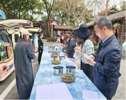 在文化体验环节,大家参观了天艺村艺术馆,感受传统与现代艺术交融的魅力,沉浸式体验非遗扎染与漆画制作。在专业老师的指导下,大家近距离感受非遗文化的深厚底蕴与手工技艺的独特魅力,进一步加深了对中华优秀传统文化的认同,激发了传承与创新的热情。