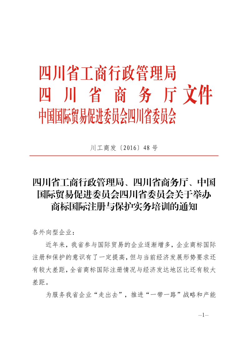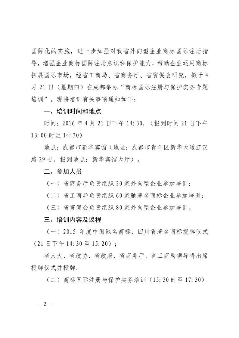 四川省工商局、四川省商务厅、四川省贸促会关于举办商标国际注册与保护实务培训的通知