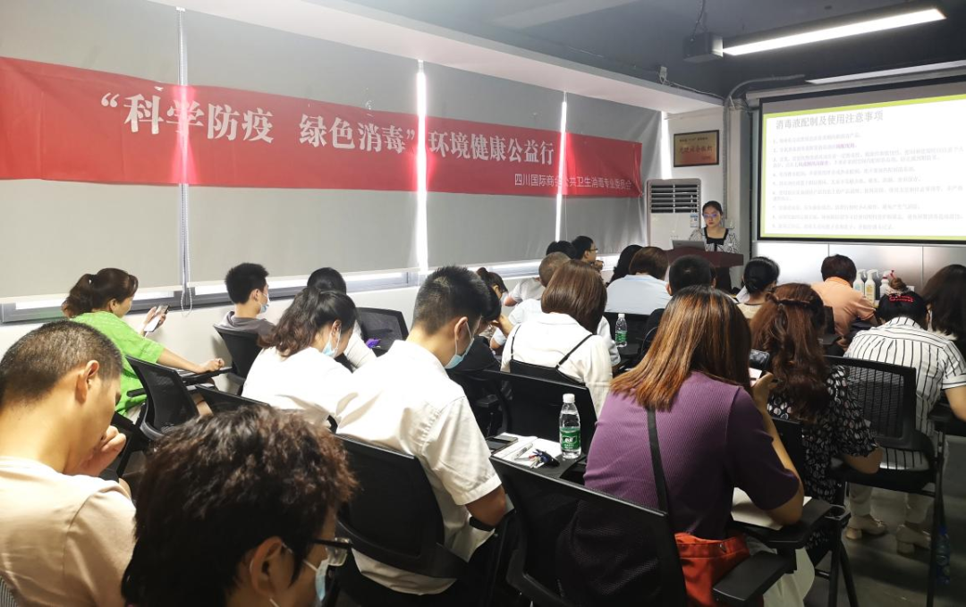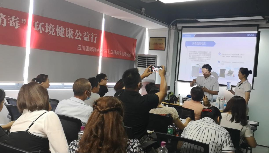 QQ群:6740378232021年7月22日,由四川国际商会公共卫生消毒专业委员会开展的“科学防疫 绿色消毒”环境健康公益行活动走进成都市家政协会,活动由四川国际商会公共卫生消毒专业委员会、成都市家政行业联合举办,来自成都市家政(清洁)行业、职业技能培训学校(机构)等单位的负责人,管理人员30多人参加活动。